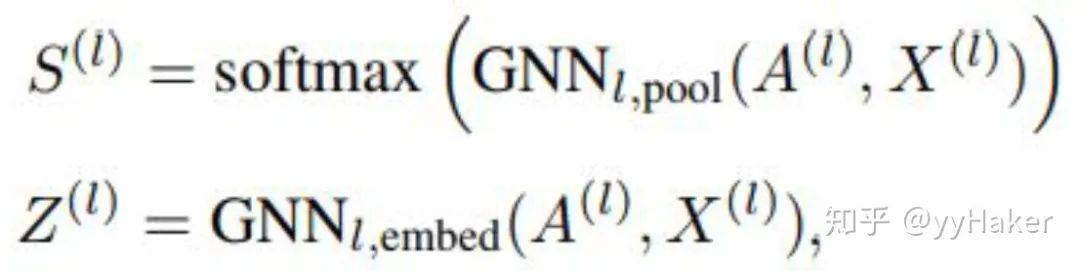 总的来看,每层的DiffPool其实就是更新每一个簇节点的嵌入和簇节点的特征矩阵,如下公式: