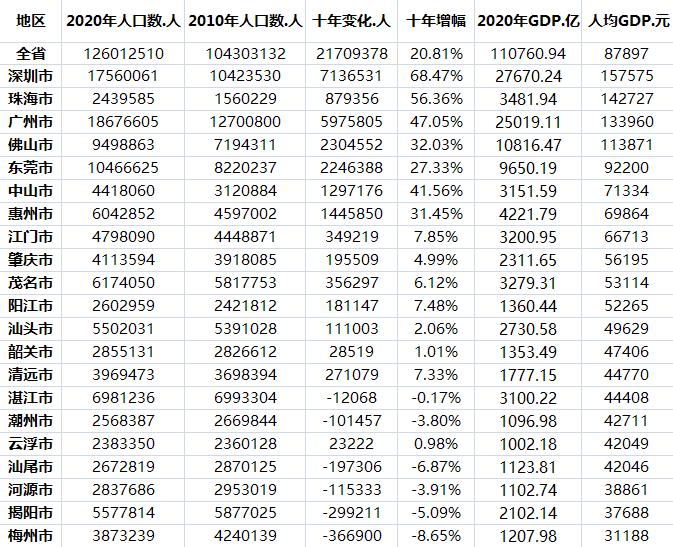 和2010年的人口普查数据相比,广东人口增加了2170万人,10年间的人口增幅高达20.8%,若从全国来看,广东是人口增加数量最多的省份,对年轻人口的吸引力依旧很强。