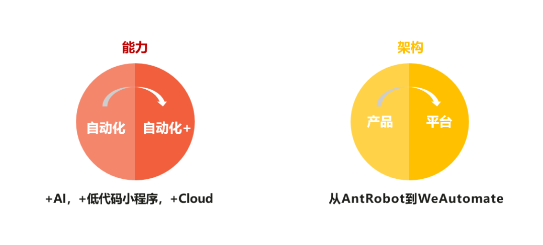 2020年我们决定将RPA产品赋能给合作伙伴和客户,希望也能助力客户实现数字化转型。但是在过去一年与客户和伙伴的交流和实践中我们发现,除了流程自动化的挑战外,客户还面临着信息化程度不高以及智能化水平不足的问题。单纯的RPA产品无论是从能力还是架构上都无法有效打通企业数字化转型的‘最后一公里’。所以我们希望通过“自动化+”的方式,将RPA与AI、云化、低代码开发平台整合,构筑更强的智能自动化能力;同时在产品架构上,从单点的RPA产品升级成为整合的智能自动化平台。这也是我们将品牌升级为WeAutomate的原因,其内涵是:客户、伙伴、开发者和华为一起发展自动化业务,让自动化惠及每个人。