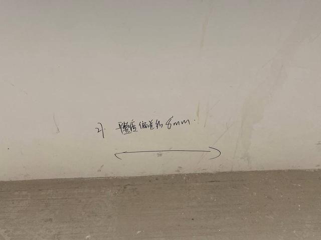 验房师在勘验过程中发现,墙体垂直度良好,但是卧室有三处墙面平整度偏差均约8mm,阳台推拉门下方踢脚线平整度偏差约9mm。根据《砌体工程施工质量验收规范》,清水墙表面平整度允许误差为5mm。