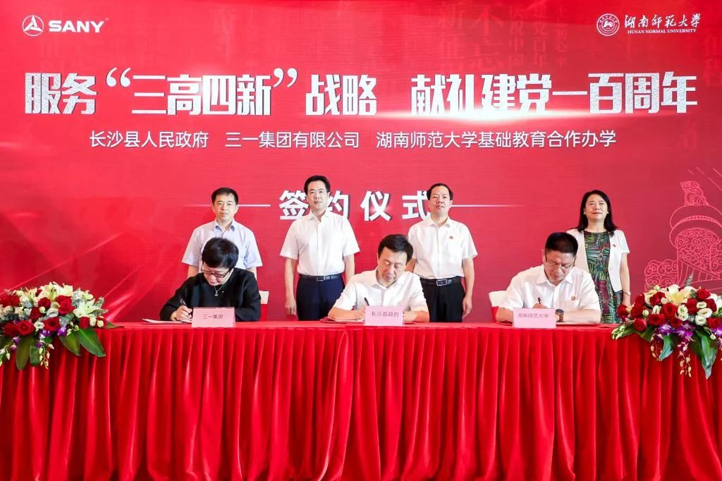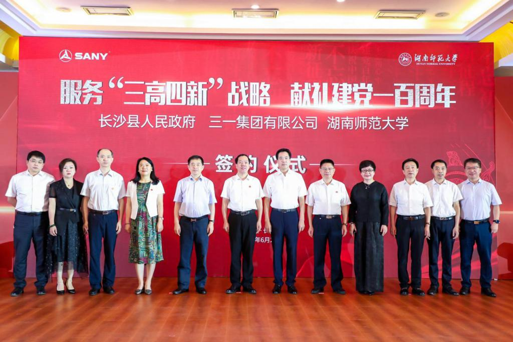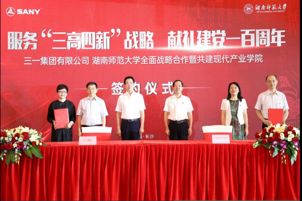 湖南师范大学与三一集团均发源于涟源,有着深厚的合作基础和良好的合作前景。双方于2020年10月开启教育办学合作,共建了“三一乡村教育研究院”,直接服务国家乡村振兴战略。双方此次全面升级战略合作,同时为响应我省“三高四新”战略,双方特别签订了共建“三一现代产业学院”协议,由三一集团出资2000万元,瞄准“三高四新”战略重点,在湖南师范大学挂牌成立一所融人才培养、师资建设、科学研究、理论创新于一体的产业学院,以实际行动为服务我省“三高四新”战略,特别是助力打造“国家重要先进制造业高地”提供“三一方案”和“师大智慧”。