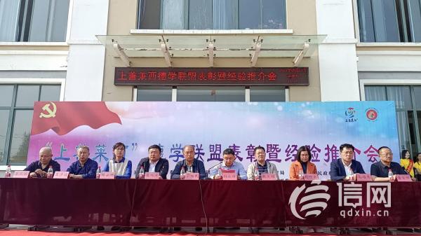 信网5月24日讯 “故今日之责任,不在他人,而全在我少年……”伴随着同学们激情澎湃地诵读《少年中国说》,5月21日下午,“上善莱西”德学联盟表彰暨经验推介会在青岛莱西市河头店镇南岚中学隆重召开。青岛市第二轮乡村振兴工作队副队长、青岛市委统战部二级调研员魏文征、莱西市关工委常委副主任丁相民、莱西市委宣传部分管日常工作的副部长孙永传、共青团莱西市委副书记国安娜、莱西市教育和体育局副局长赵巧云、河头店镇党委书记崔旭升等领导出席会议。