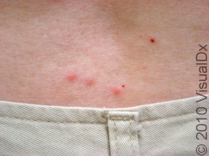 臭虫的叮咬是无痛的,所以当时被咬了也没什么感觉,直到第二天早上,被咬的地方发痒、肿胀、发红。通常,你会发现有两个或三个叮咬点,它们可以是随机的,也可以是一条直线(又叫:早餐、午餐、晚餐)。