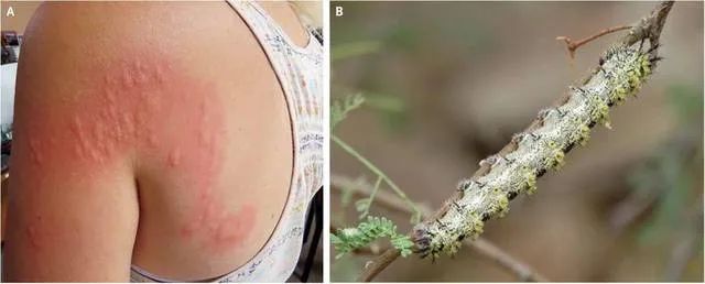 刺毛虫是蝶或蛾类动物的幼虫,主要集中在温带与热带地区。其毒刺刺伤皮肤可引起刺毛虫皮炎,皮疹是最常见的临床表现。