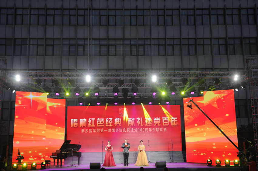 6月26日晚,新乡医学院第一附属医院“唱响红色经典 献礼建党百年”庆祝建党100周年合唱比赛举行,该院党委书记陈建国,党委委员、工会主席邵金远,学校相关部门负责人,新医一附院全体院领导与现场数百名观众一同观看了比赛。