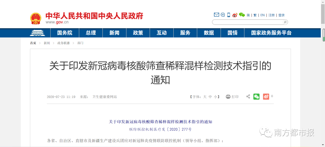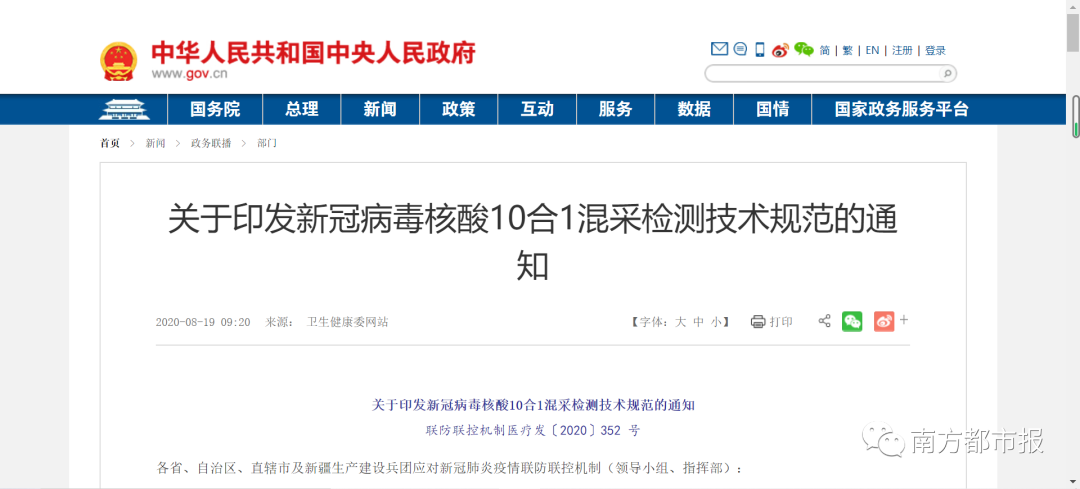 2020年7月21日,国务院应对新型冠状病毒肺炎疫情联防联控机制医疗救治组印发的《新冠病毒核酸筛查稀释混样检测技术指引》、2020年8月17日颁布的《新冠病毒核酸10合1混采检测技术规范》,均对混采检测流程作出详细指引,包括样本采集、标本送检、实验室接收、检验结果处理、检测后样本处理等一系列操作。