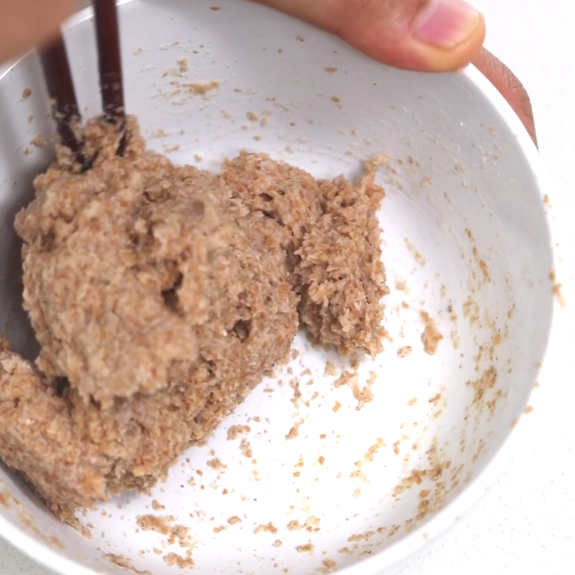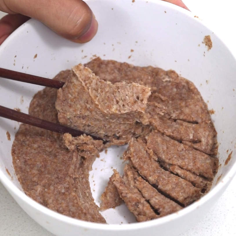 60g全麦粉加80g热开水,搅拌均匀就是烫种,保鲜膜贴面密封冷藏一晚。