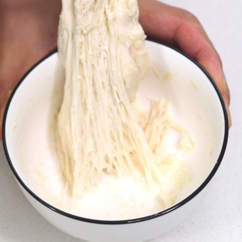 高筋面粉 190g / 蛋液 27g / 冰水 103g