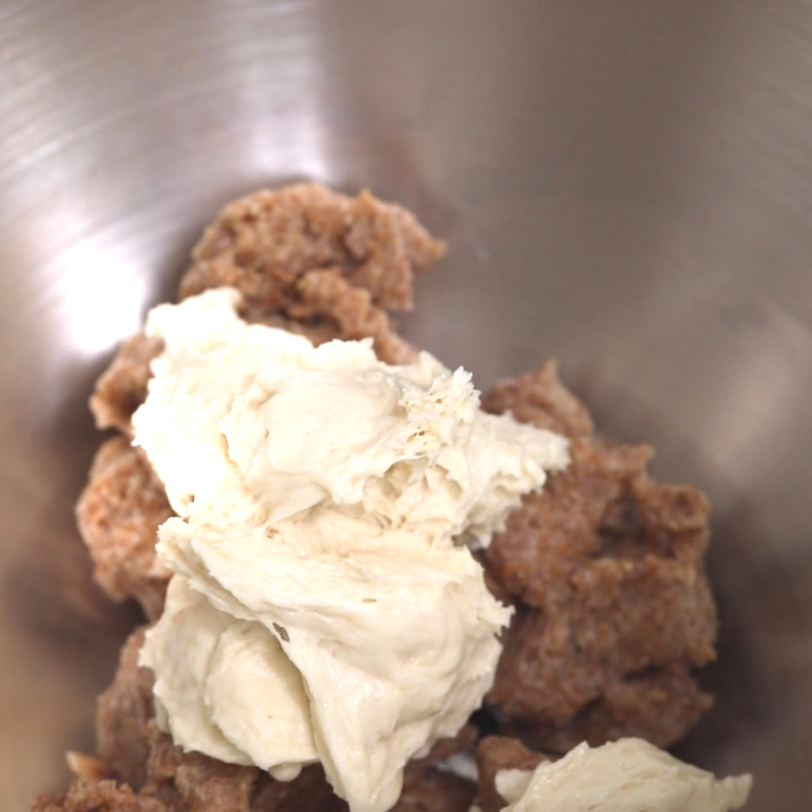 烫种使全麦粉糊化,增加面包的Q弹感,这张图是冷藏一晚后的烫种,烫种可以冷藏保存2-3天。