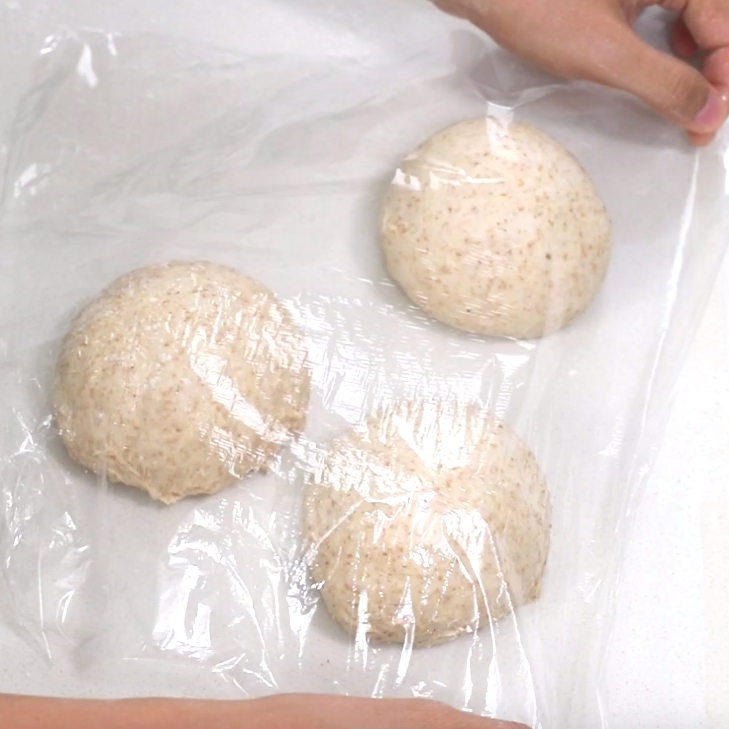 再次盖保鲜膜室温松弛10分钟,注意夏天气温高,松弛时可能导致面团发酵过度,再次提醒要开空调!