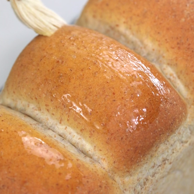 今天这款全麦吐司,采用烫种加冷藏中种法,20%适中全麦比例,使它具有不输白土司的膨发力和柔软口感,让营养与口感兼的,非常香哦!