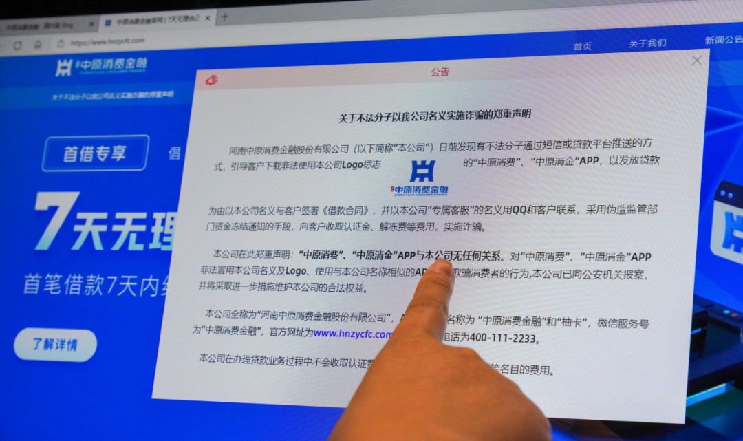 大河报·大河财立方记者注意到,今年以来,中原消费金融公司多次发布声明,称对“中原消费”“中原消金”App非法冒用该公司名义及Logo、使用与该公司名称相似的App名称欺骗消费者的行为,已向公安机关报案,并将采取进一步措施维护该公司的合法权益。