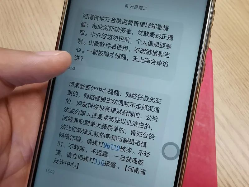 针对层出不穷的网络金融诈骗手段,河南多个部门发布提醒。6月8日,河南省地方金融监督管理局与河南省反诈中心接连发布两条短信。