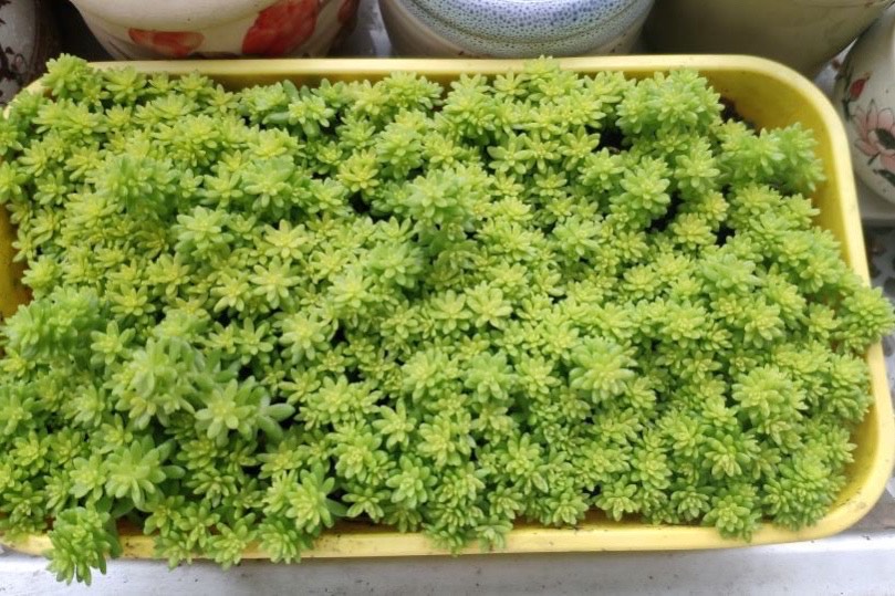 只要温度在10到30度之间,插扦都可以进行,通常情况下春秋季节生根速度会更快一些,差不多7天左右就可以服盆,服盆之后立马就会进入到快速生长期,用不了3个月一盆满满当当的黄金万年草就长成了。
