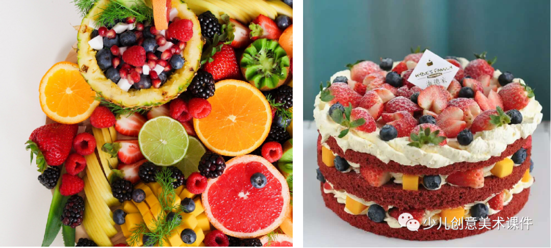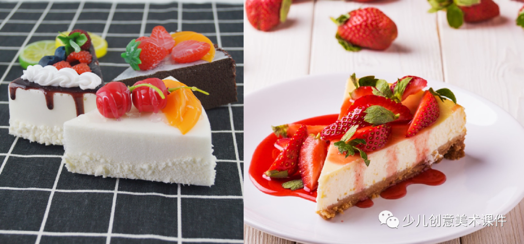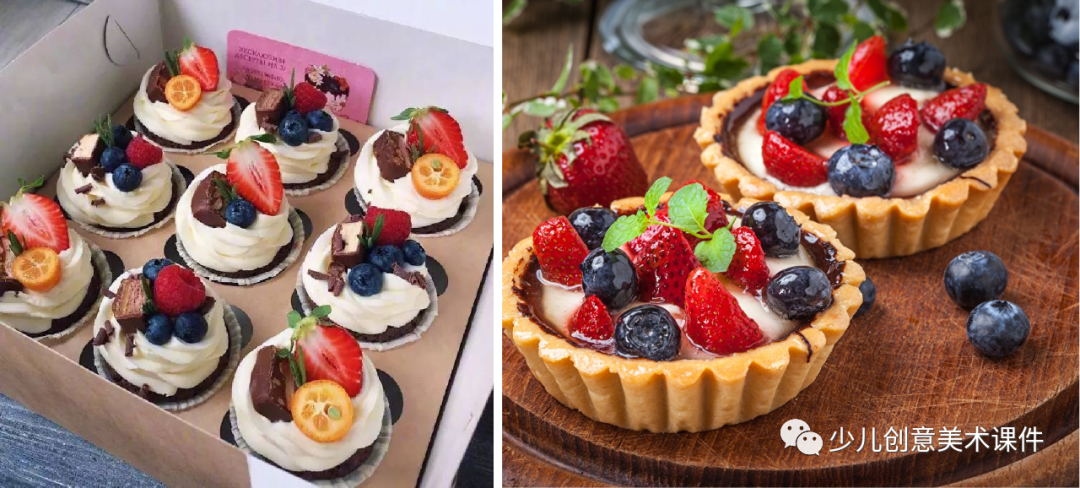 教学目标:科普蛋糕的起源和由来及相关的小故事,同时了解蛋糕的制作方法及使用食材,仔细观察蛋糕的实物图片,把握其造型特点,根据个人喜好、生活经历,创作自己喜欢的小蛋糕: