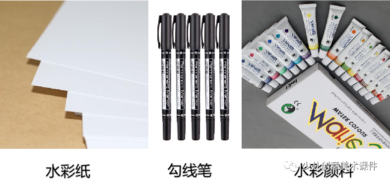 教学重、难点:参考范画和作画步骤,铅笔起形定构图及主体物的大致轮廓,马克笔确定造型、结构,并刻画细节刻,水彩着色,锻炼孩子的观察、造型能力和水彩颜料上色的技法。