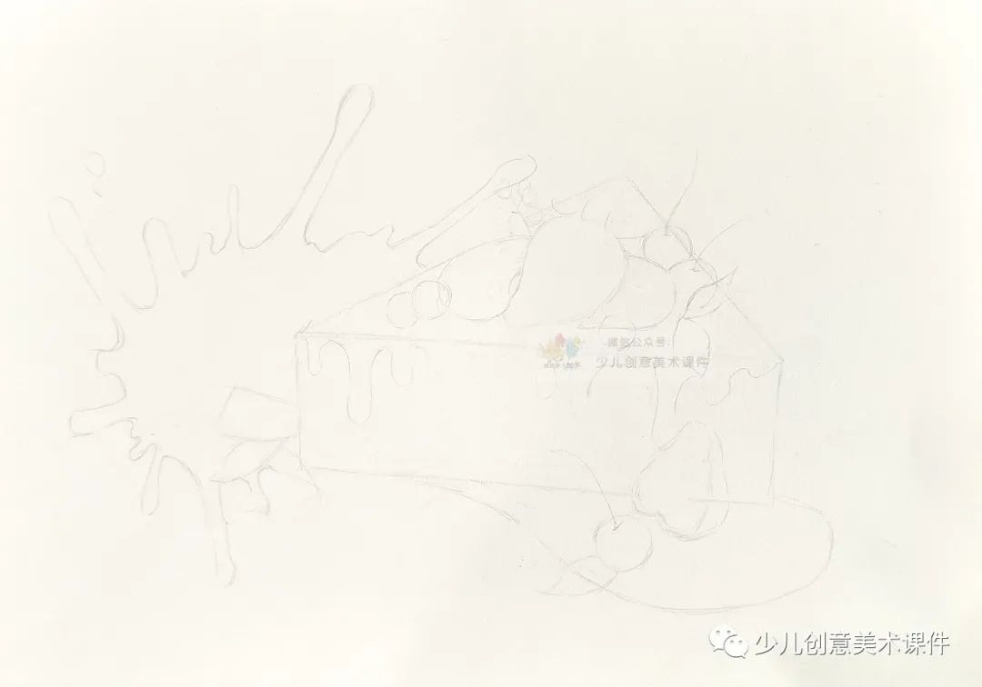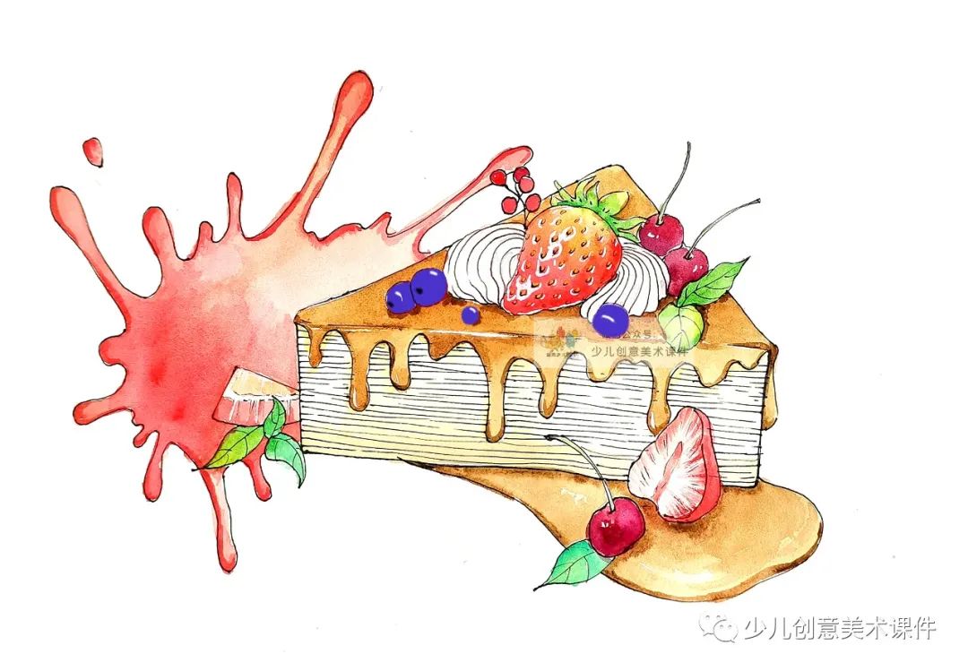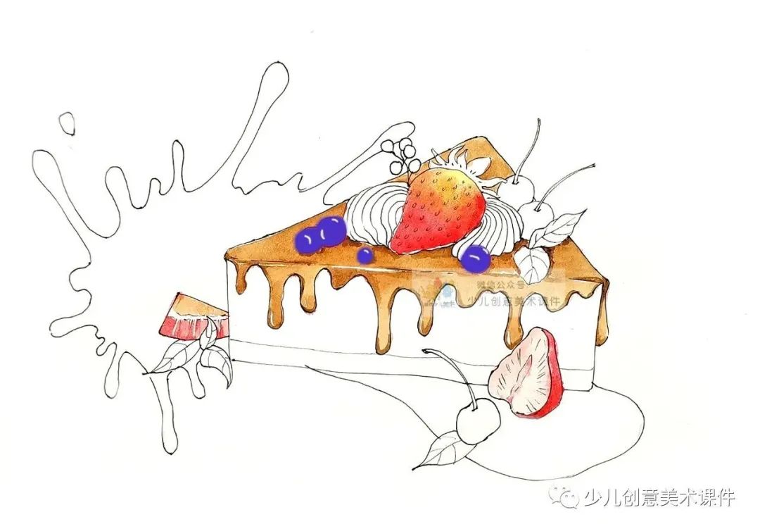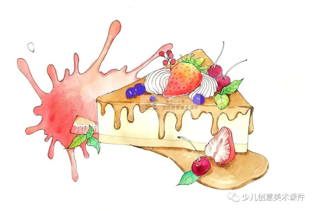 4.根据自己的喜好,确定蛋糕的固有色,用水彩颜料对其进行着色处理,颜色的变化可使得画面色彩丰富同时增强物象的体积感: