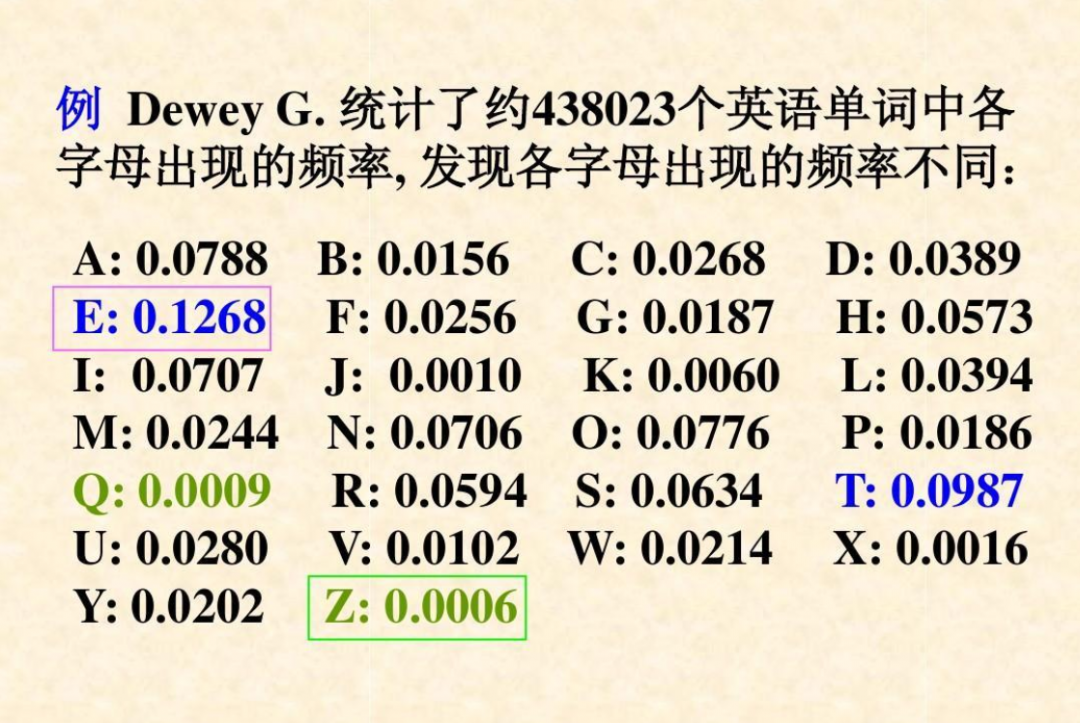1932年哈佛大学的语言学专家齐夫(Zipf)在研究英文单词出现的频率时,发现如果把单词出现的频率按由大到小的顺序排列,则每个单词出现的频率与它的名次的常数次幂存在简单的反比关系,这种分布就称为齐夫定律,即对于指数为2的幂律分布(a=2),事件的等级排列序号乘以它的大小等于常数,也就是事件等级×事件大小=常数。