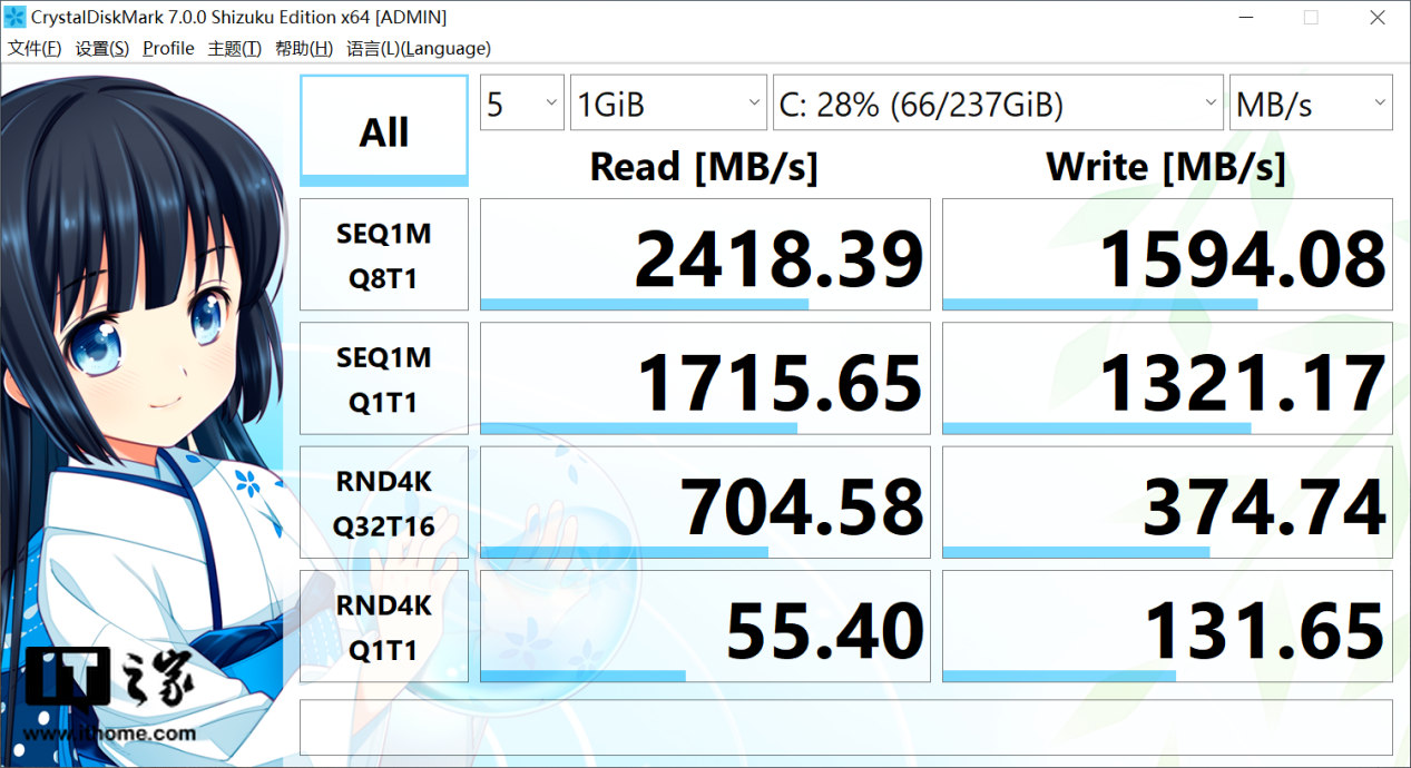硬盘读写速度方面,IT之家通过《CrystalDiskMark》测得 Surface Laptop 4 硬盘读取速度为 2418.39 MB/s,写入速度为 1594.08 MB/s。