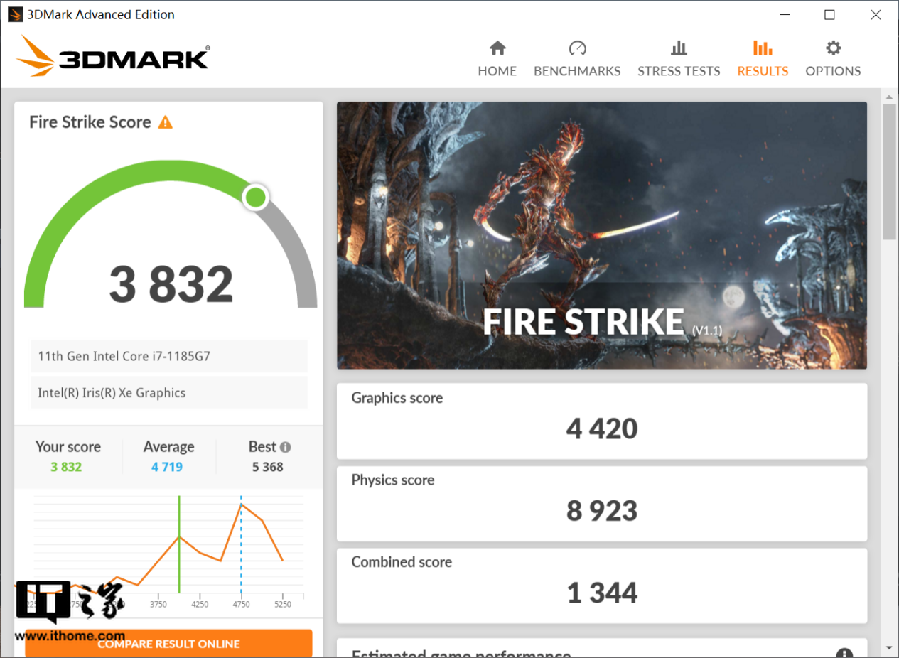 接着小编又对 Surface Laptop 4 做了《3D Mark》的测试,来考察 i7-1185G7 新一代 Xe 核显的性能,结果 Surface Laptop 4 的 Time SPY 成绩为 1669 分,Fire Strike 的成绩为 3832 分,这个性能处理一般的轻量图形任务或者玩《英雄联盟》这样的网游基本没什么问题。