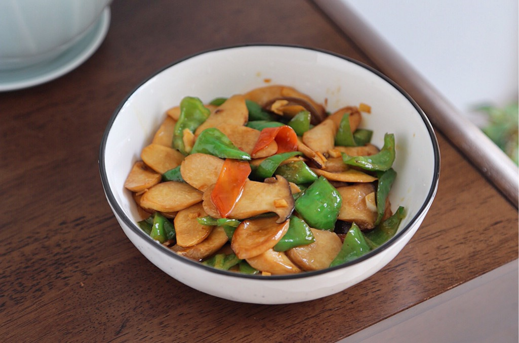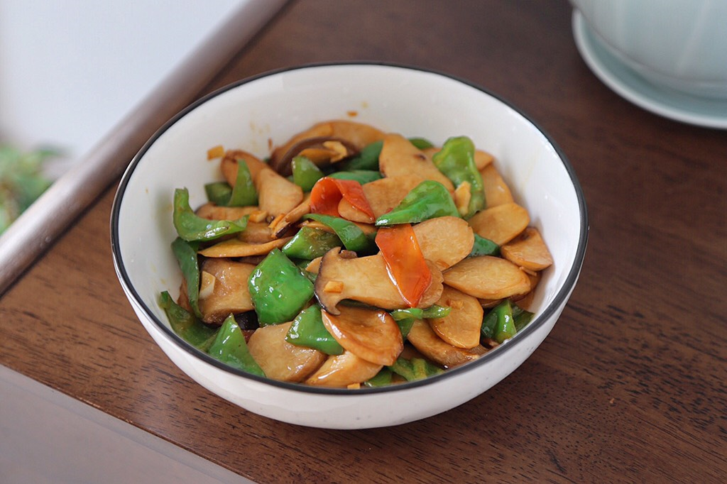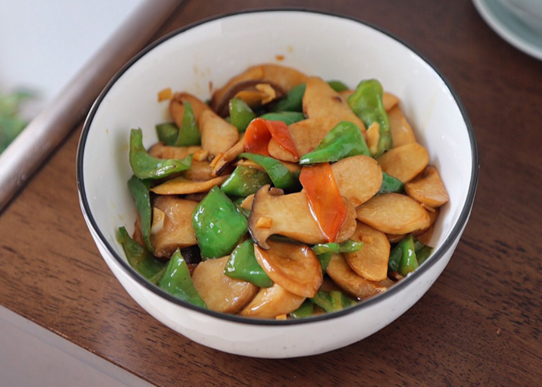 杏鲍菇是很受欢迎的菌类,杏鲍菇既可以凉拌,还可以素炒食用,搭配胡萝卜和青椒,为菜色增加色泽,青椒味道微辣,能够帮助刺激味蕾,杏鲍菇营养含量高,为身体补水嫩肤,比山珍海味都美味。