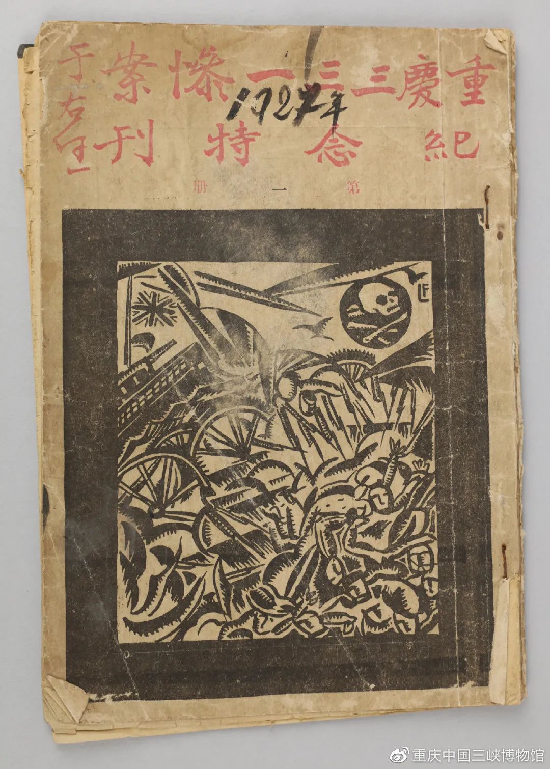 纸质,印刷品。长25厘米,宽17厘米。封面顶部为“重庆三三一惨案纪念特刊第一册于右任”字样,并用毛笔标注“1927年”。封底印有“非卖品”字样。重庆三三一惨案纪念特刊编辑部编辑,1928年3月印行,通讯处为上海古拔路33号。1959年重庆市博物馆征集,现藏重庆中国三峡博物馆(重庆博物馆)。二级文物。