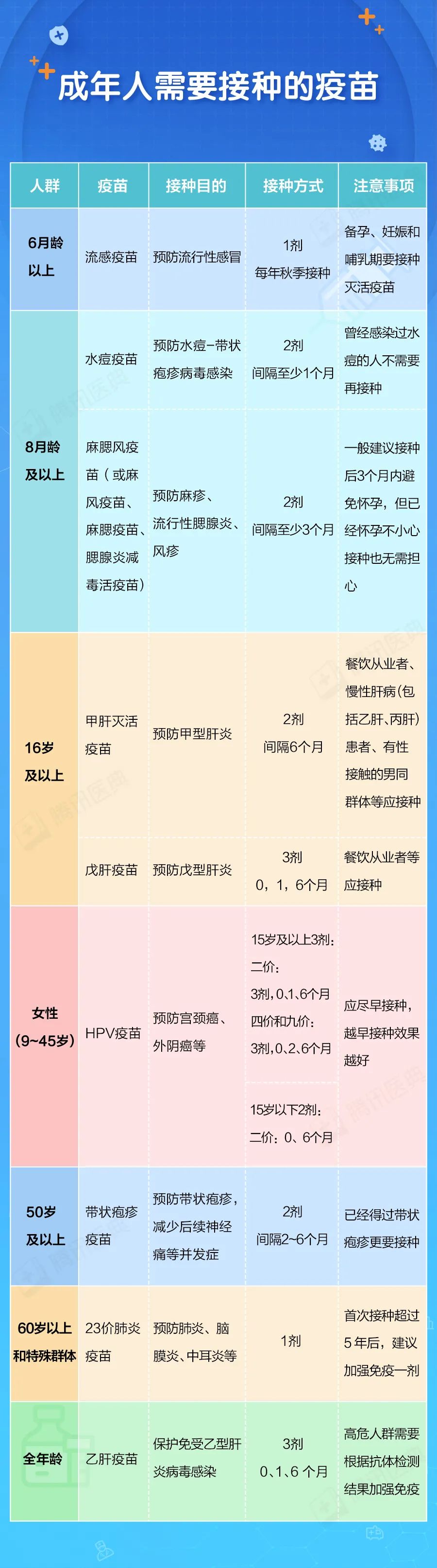打完新冠疫苗之后,别忘了成年人还需要打其它疫苗!