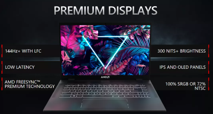 上面我们提到了AMD Advantage设计框架,实际上,这不仅仅是一个关系到CPU、GPU等核心硬件的标准,而是一个包含一整套设计规范:硬件方面,AMD Advantage笔记本都将配备AMD处理器和显卡以及配套AMD软件,搭载包括AMD SmartShift等在内的智能技术,经过优化,可为当今视觉效果要求苛刻的游戏提供超过100fps的流畅游戏体验;显示器方面,配备刷新率不低于144Hz显示器和FreeSync premium技术以实现无撕裂无卡顿的游戏体验,并且显示器还应具备高亮度、高色域等特性;使用体验方面,会配备PCIe SSD,提升笔记本响应速度,控制高负载下C面的温度,保障激烈游戏中玩家也有良好的使用感受,优化电池续航,使产品视频播放时间达到10小时等等。