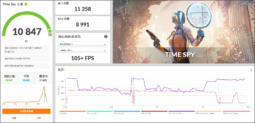 Time Spy场景测试,RX 6800M显卡得分11258