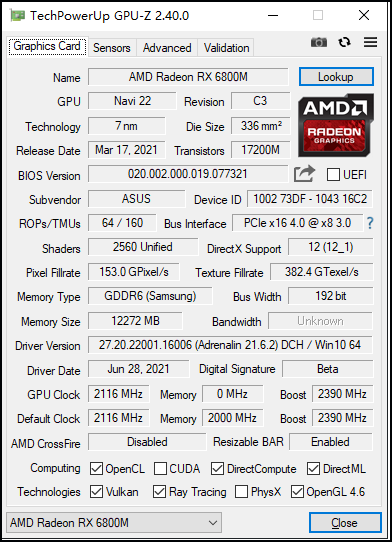 RX 6800M实战性能测试:AMD移动旗舰终登场!