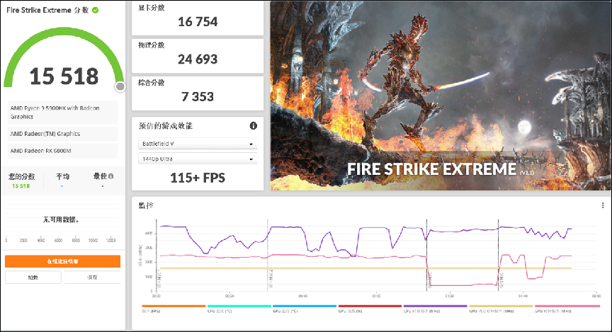 Fire Strike Extreme场景测试,RX 6800M显卡得分16754