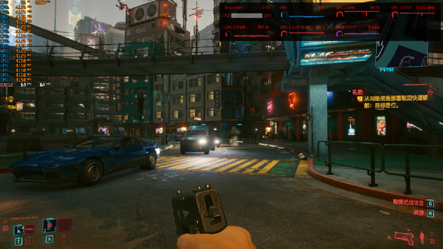 ▲《赛博朋克2077》FHD预设超级画质,RX 6800M的平均帧速为64fps,和150W的RTX 3080打平。