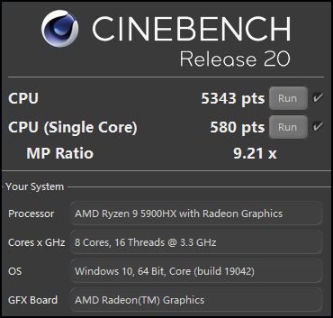 ■处理器:AMD锐龙9 5900HX(8/16,3.3/4.6GHz)