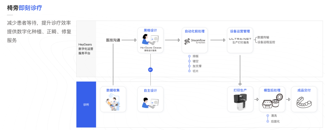 “解决方案包括黑格的材料、软件、工具盒,以及线上技术领域、支持设计平台、诊疗服务等,可实现线上线下零延迟。”