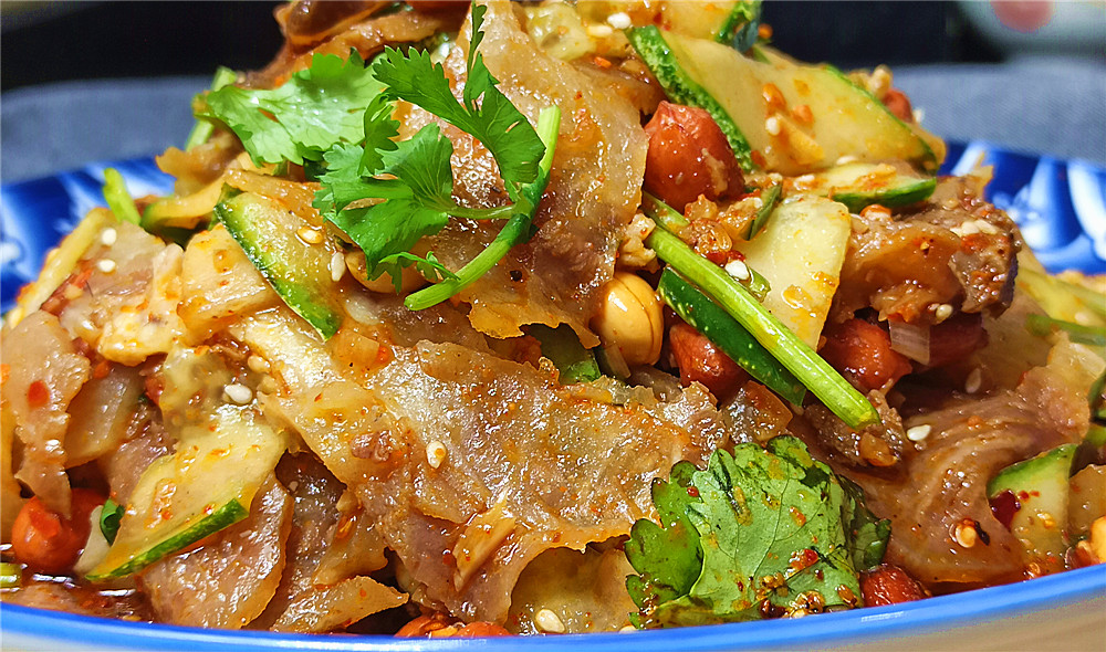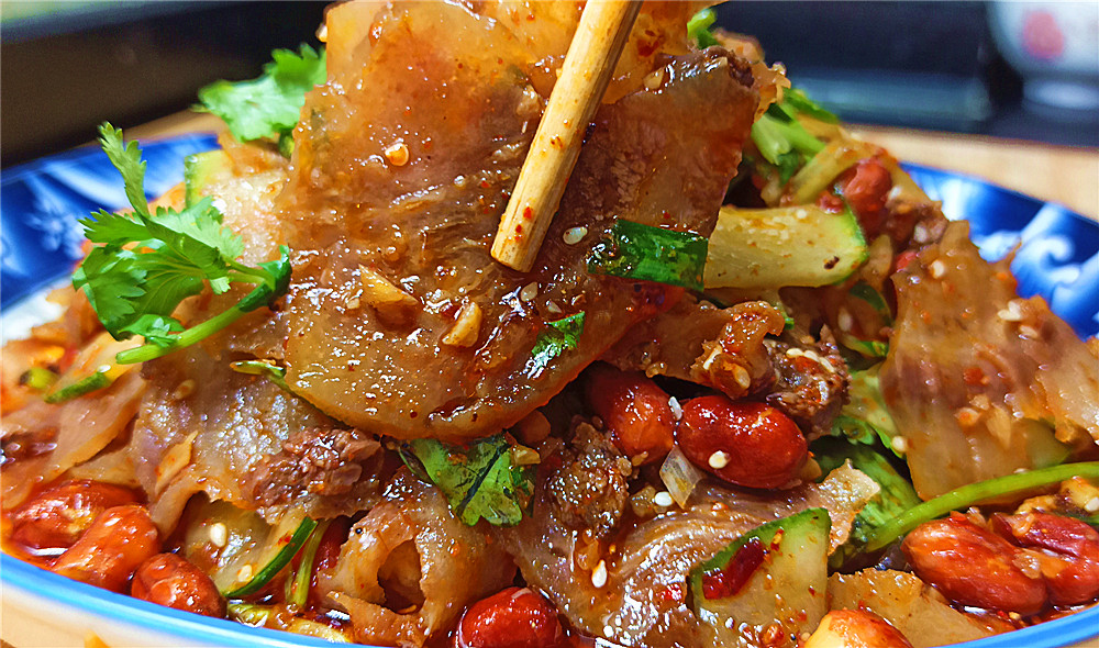 (3)牛头肉切的时候不要切得太厚,薄一点拌出来容易入味,吃起来口感也好。
