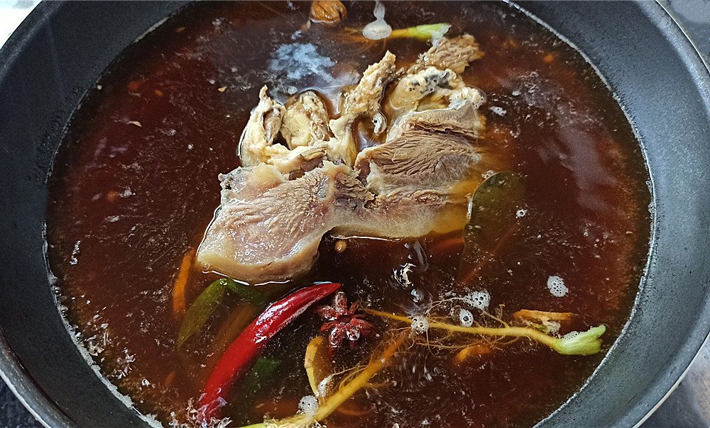 (2)我们买的牛头肉一般都是煮熟的,所以卤制的时候不要煮的时间太久,煮久了,会让牛头肉失去口感,一般煮两分钟,直接浸泡1-2个小时就好。