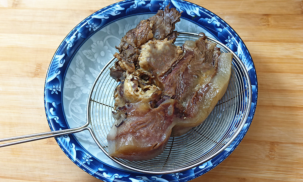 【步骤三】:牛头肉浸泡完后捞出来把水分沥干备用。