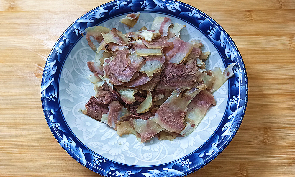 【步骤四】:把沥干的牛头肉改刀切成薄片,然后装入碗中备用。