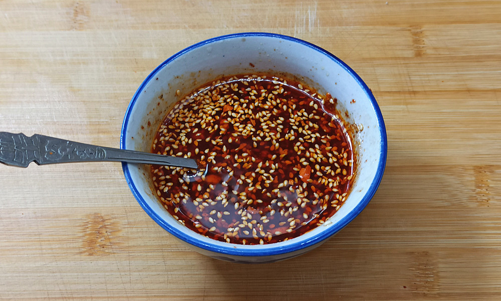 (4)拌这道菜一定要多放点辣椒和花椒油,麻辣口味可以压制牛肉的异味,变得麻辣鲜香好吃。