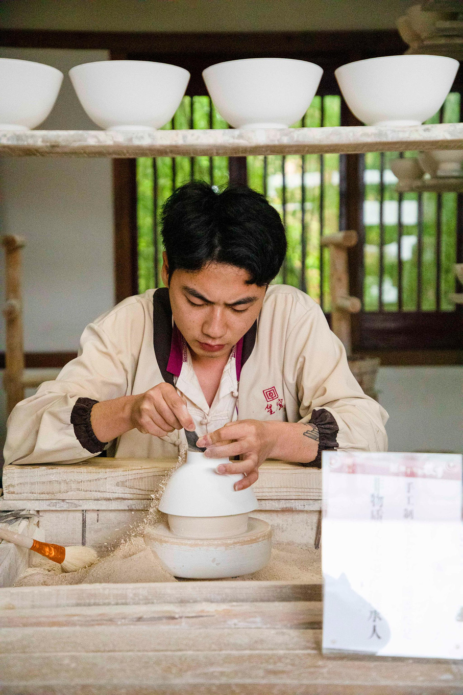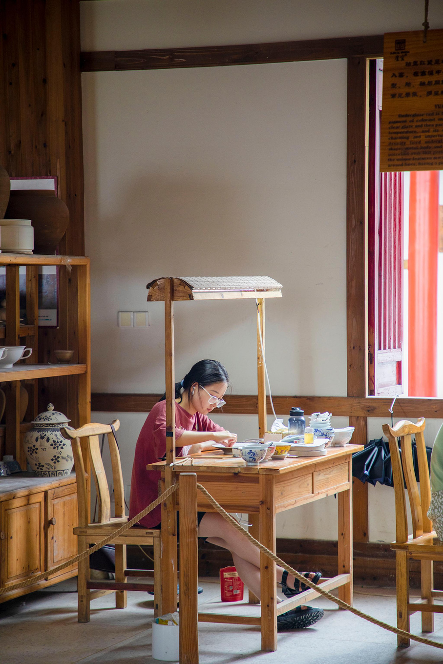 在皇窑你能看到许多年轻的瓷器爱好者,在这里认真坐着属于自己的一道工序,井井有条不被景区内的游客所打扰,如果有机会我也想参与一下陶瓷的生产过程,亲自做一件属于自己的陶瓷。