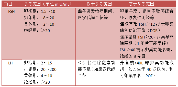 表2 FSH和LH各阶段测定正常值及过低和过高的意义