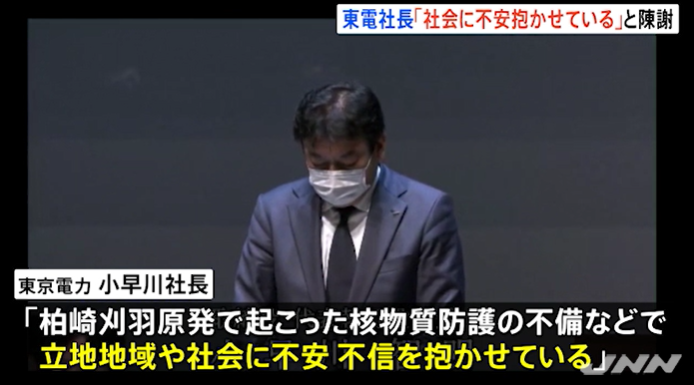 海外网6月29日电 据日本TBS电视台消息,因核物质防护设施多处出现故障且处置不当,东京电力公司的柏崎刈羽核电站此前被禁止重启。相关消息引发该公司股东不满。29日,东京电力公司社长小早川智明在股东大会上,就安全缺陷鞠躬道歉。小早川智明称:“因核物质防护不完备,给社会造成不安和不信任情绪,十分抱歉。”