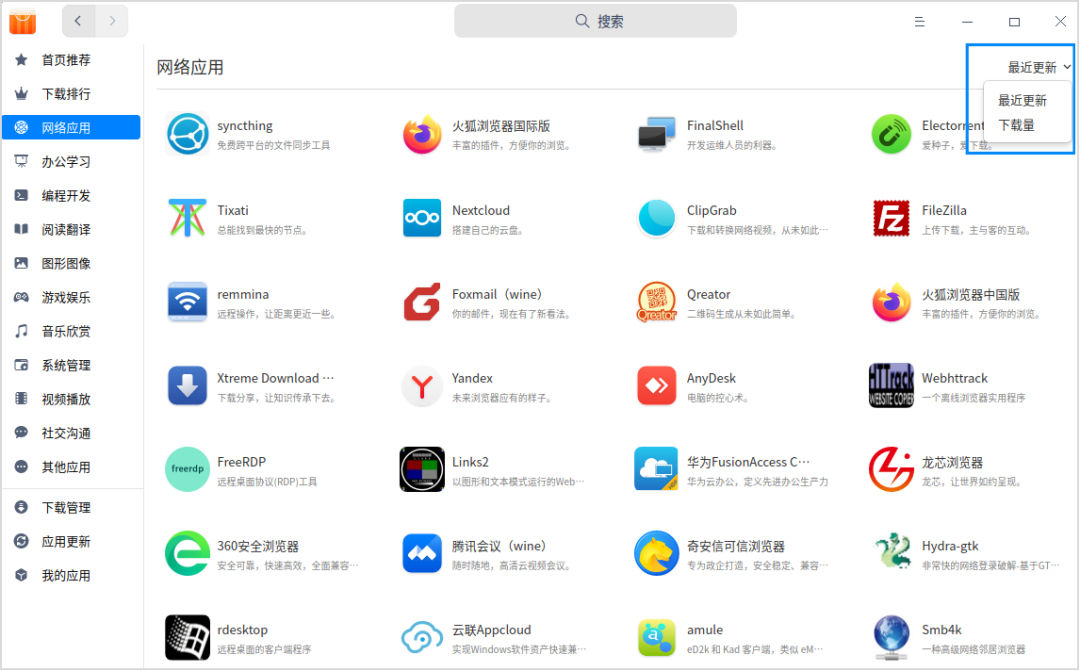 优化分类列表中应用的排序方式,新增“最近更新”的排序方式,使新上传的应用能够更容易被找到。