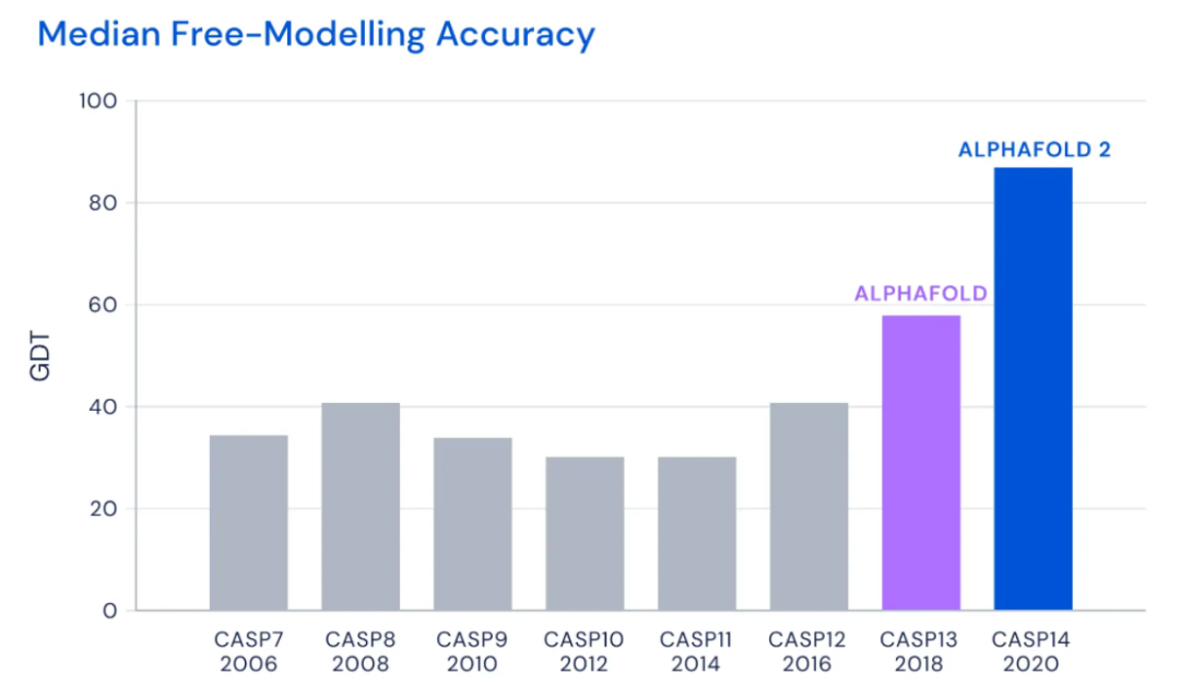 “比赛中,AlphaFold2预测的大部分结构达到了空前的准确度,不仅与实验方法不相上下,还远超解析新蛋白质结构的其他方法。”