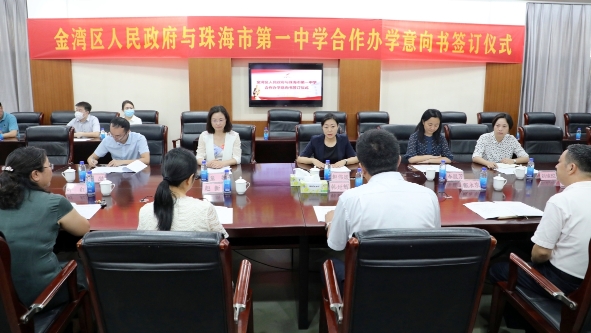 金湾区委副书记、区长,珠海经济技术开发区党工委副书记、管委会主任赵伟媛与珠海一中校长韩延辉共同签订合作协议。赵伟媛表示,近年来,金湾区全方位推进经济社会高质量发展,全力打造珠海市产业中心、交通中心、城市新中心。而教育不仅是最大的民生,更是打造良好营商环境,吸引人才、留住人才的重要因素。此次通过金湾区和珠海一中合作办学,将擦亮珠海一中集团办学的品牌,进一步扩大优质教育资源向珠海西部辐射,在金湾打造出集团办学的新典范。