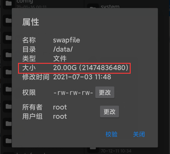 如同文章开始所展示的,果子已经在 /data/ 目录下创建了 20G 的虚拟内存,通过检测工具测试可正常加载使用。