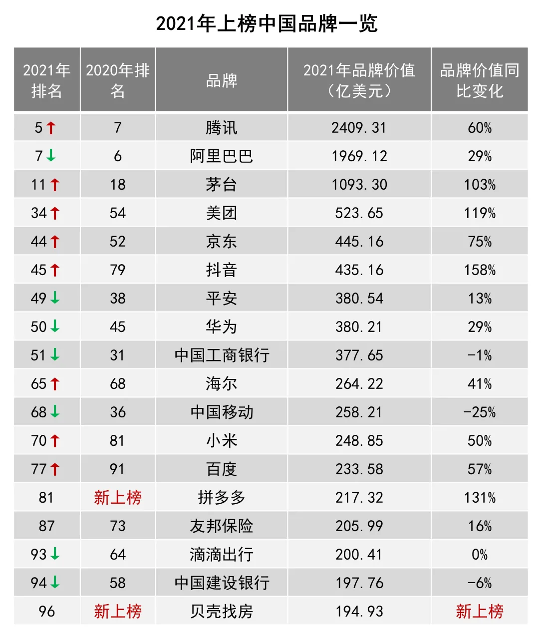 2021年最具价值全球百强榜,18个中国品牌入围