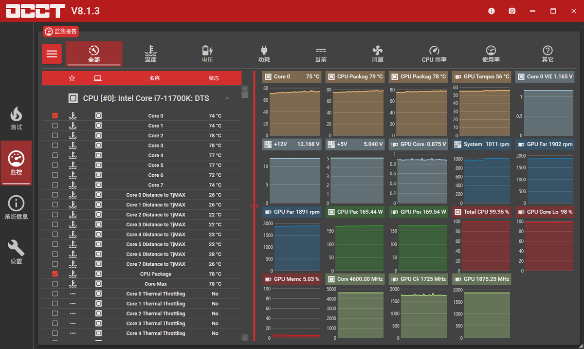 Intel酷睿i7 11700K + RTX 3060的组合,默认TDP设置下整机考机功耗大约为373W,像航嘉WD650P这样的650W白金电源可以轻松HOLD住