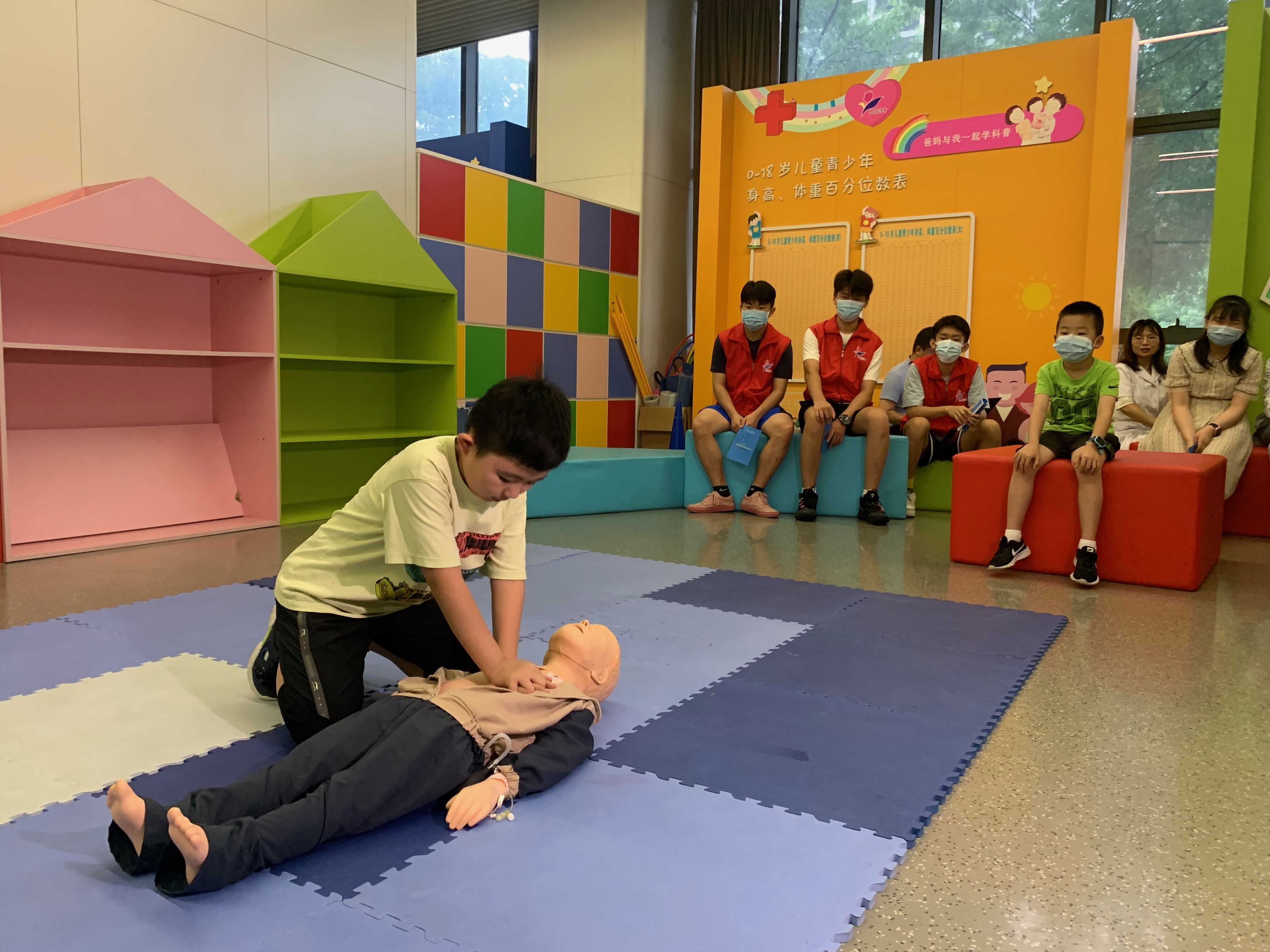 在当天的活动现场,专家们手把手对来参加活动的小朋友们进行教学演示。“如果一不小心摔到地上,手又不能动,我们这时候就可以先拿书本或衣服把肢体固定起来,然后去医院。”专家首先对意外伤害造成的骨折等情况指导。
