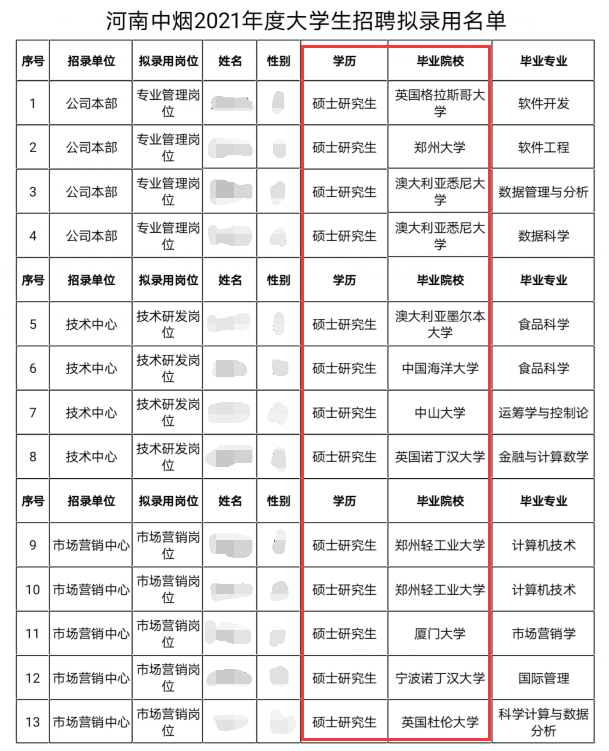 近日,《河南中烟工业有限责任公司2021年度大学生招聘拟录用人员公示》引发网友热议。